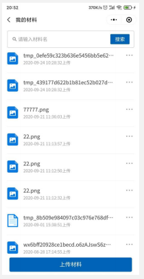 2. 上傳文件。我的材料頁面點(diǎn)擊屏幕底部的“上傳材料”按鈕,跳轉(zhuǎn)到新增材料頁面。
