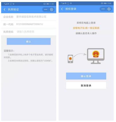 2)選擇電子營業(yè)執(zhí)照進(jìn)行驗(yàn)證,驗(yàn)證成功后,點(diǎn)擊“授權(quán)登錄”,即可在電腦端登錄該企業(yè)。