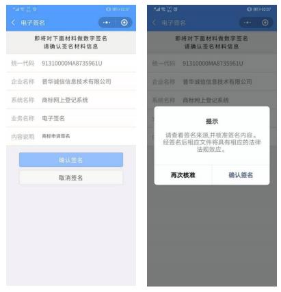 2)選擇需要做簽名的電子營業(yè)執(zhí)照進(jìn)行驗(yàn)證,驗(yàn)證通過后,確認(rèn)簽名材料無誤,點(diǎn)擊“確認(rèn)簽名”完成電子簽名。
