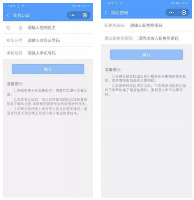 在“密碼管理-找回密碼”中,可以重置執(zhí)照密碼,重置的是本手機(jī)當(dāng)前 APP已經(jīng)下載的所有的執(zhí)照的密碼。在重置密碼前,需要先做實名認(rèn)證,確認(rèn)當(dāng)前手機(jī)的執(zhí)照持有人與操作人員是一致的,才可重置密碼。密碼重置成功后,下載新的執(zhí)照時需要錄入重置后的密碼。