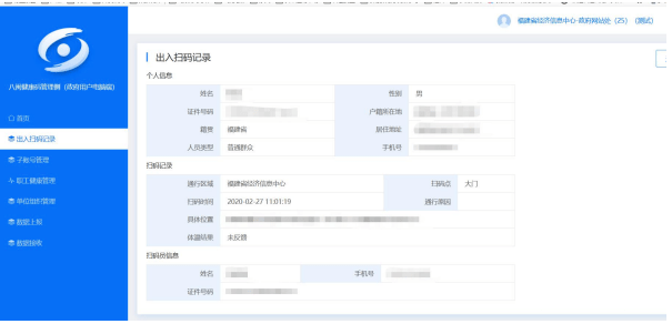 (2)進(jìn)入首頁,開始掃碼通行人員