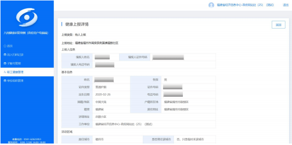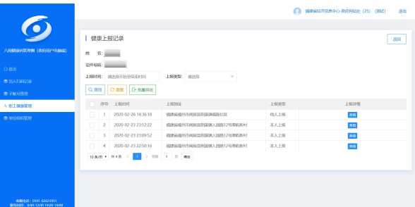 (8)點(diǎn)擊健康上報(bào)詳情頁面的【返回】,可返回員工健康數(shù) 據(jù)記錄頁面。
