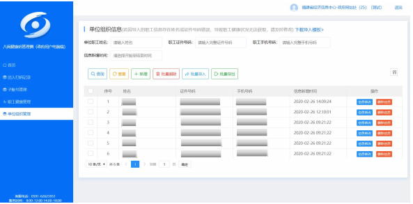1.點(diǎn)擊“職工健康管理”,可查看本單位或部門職工的健康上報(bào)情況(需先導(dǎo)入單位職工信息)。
