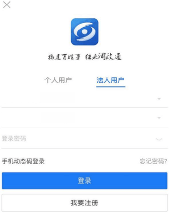 (1)打開閩政通 APP,選擇“法人用戶”登錄