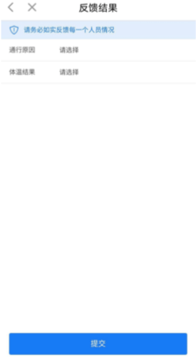 D.點(diǎn)擊“反饋結(jié)果”進(jìn)入頁面,選擇“通行原因”和“體溫 結(jié)果”。