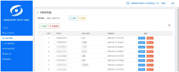 子賬號管理模塊主要是為了讓企業(yè)主賬號完成子賬號的添 加和授權(quán),繼而使子賬號可以登錄閩政通 app 的掃碼端,對他人 進(jìn)行掃碼檢測。