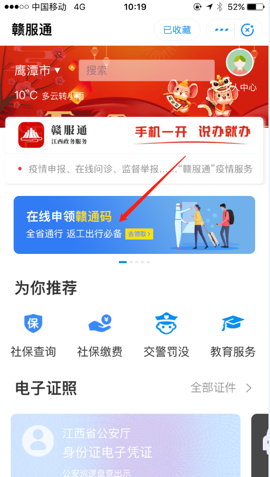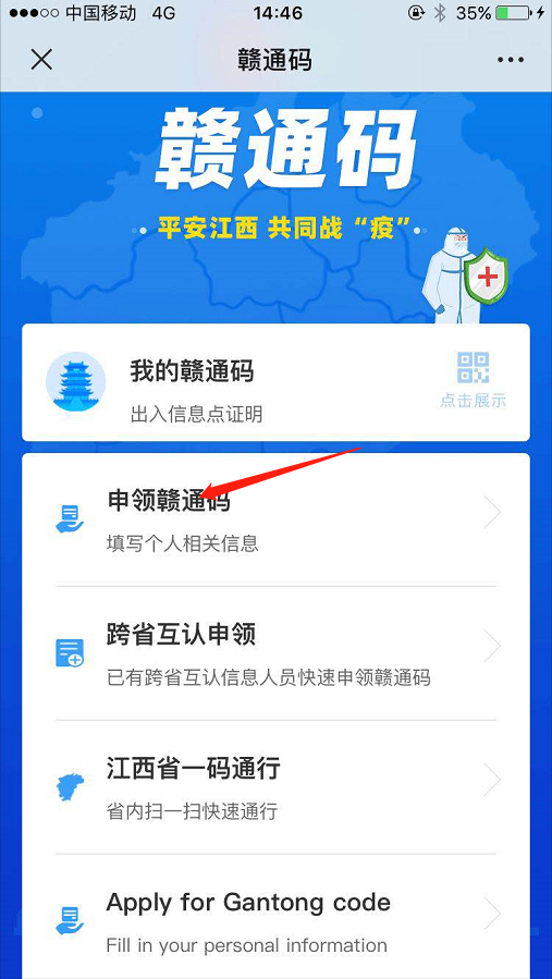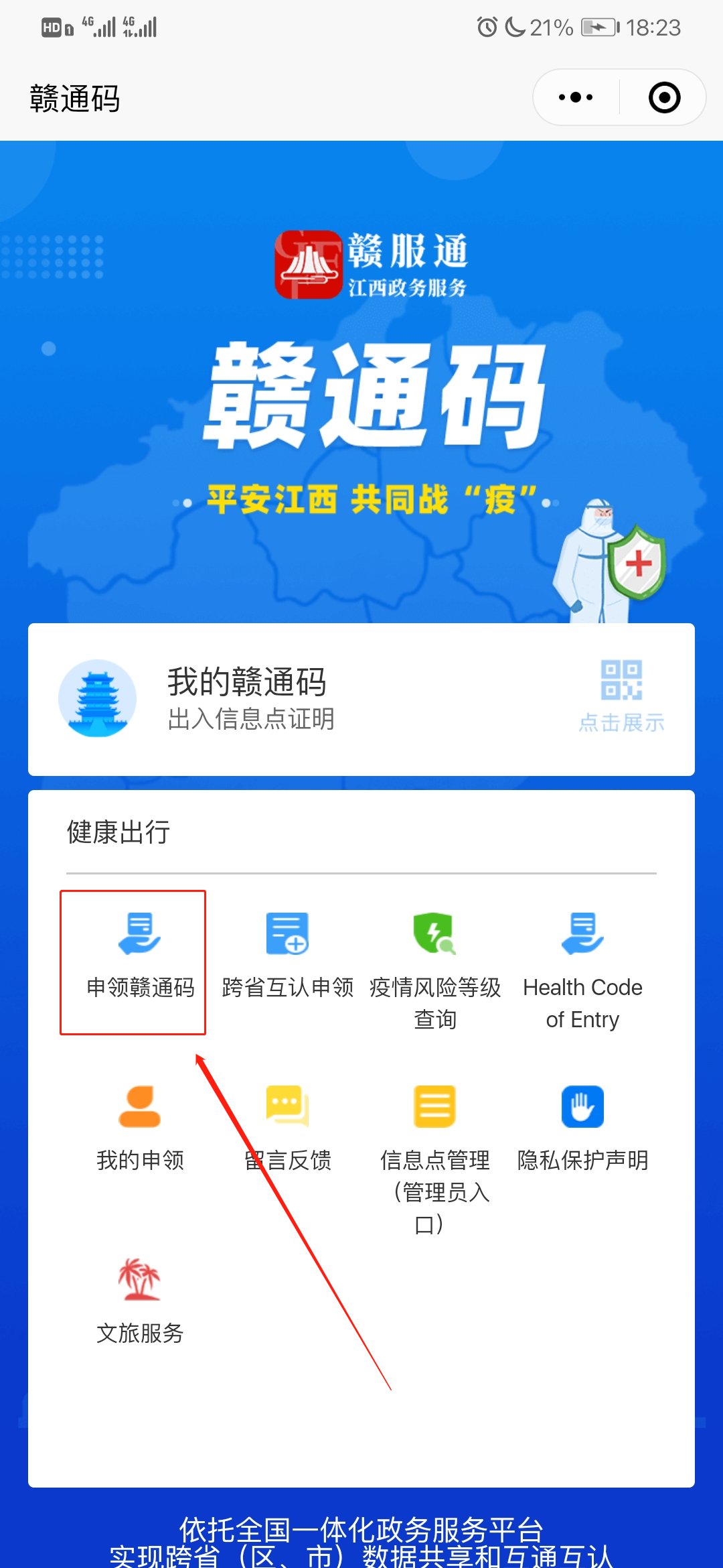 4.在贛通碼主頁中點(diǎn)擊“申領(lǐng)贛通碼”;