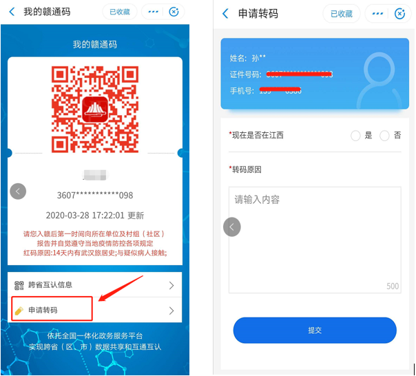5.如實(shí)填寫申報個人信息后點(diǎn)擊提交即可生成贛通碼。