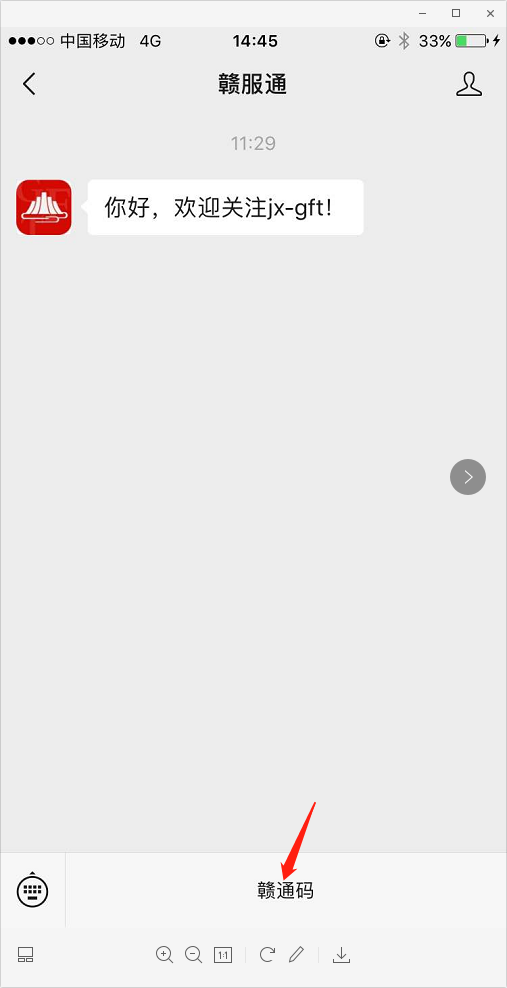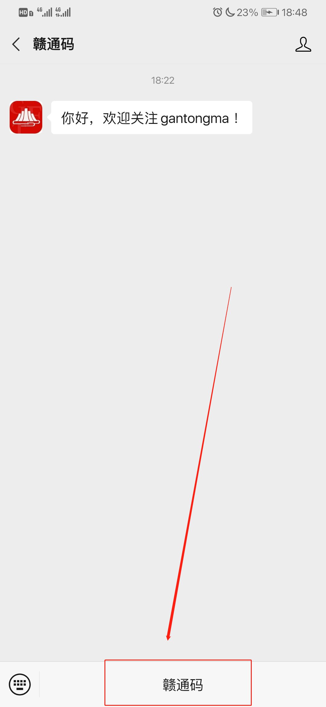 2.進(jìn)入公眾號后,點(diǎn)擊公眾號最下方菜單欄中的“贛通碼”,進(jìn)入健康碼申報界面;