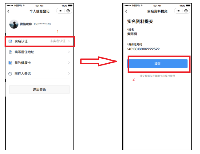 您可退出“實名認(rèn)證”頁面,點擊“我的健康卡”即可查看以手機號碼生成的健康卡,完善信息后即可查看。