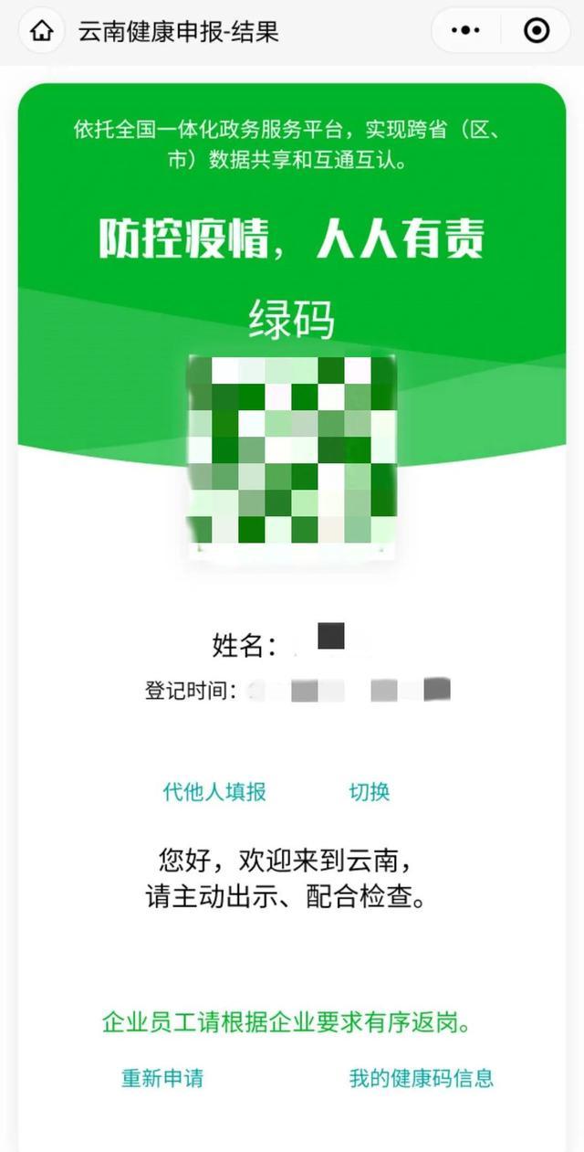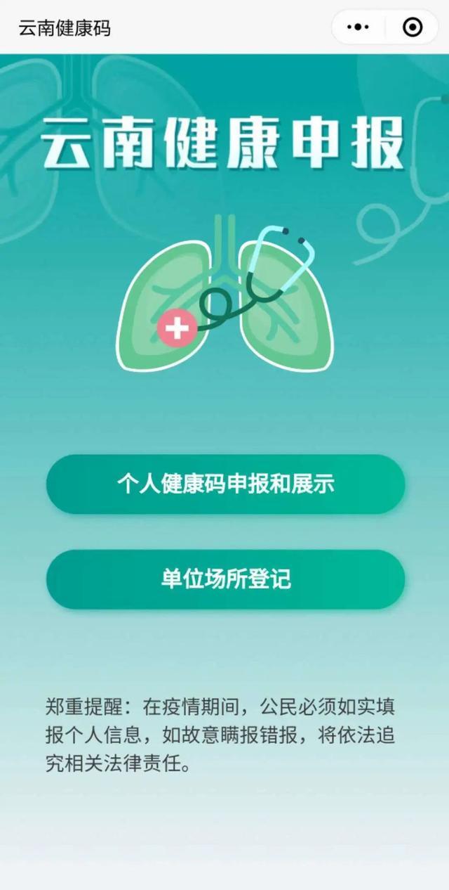 為落實《云南省應對新冠肺炎疫情分區(qū)分級防控的實施意見》(省委省政府應對疫情工作領導小組指揮部第10號通告)要求,運用大數(shù)據(jù)信息技術(shù)應對復工復學人員入滇流動高峰,云南省正式上線應用“云南健康碼”系統(tǒng),實時精準掌握入滇人員總體健康狀況。所有擬入滇人員可掃描“云南健康碼”系統(tǒng)二維碼,或登錄“一部手機辦事通”,或通過云南省衛(wèi)生健康委網(wǎng)站、“云南衛(wèi)健委”微信公眾號掃碼或點擊相關鏈接,通過網(wǎng)絡申報個人健康信息,生成云南健康碼(紅、黃、綠三色),范圍覆蓋省內(nèi)所有民航、鐵路、公路、港口等場所。無法使用手機掃碼登記的人員,可填寫紙質(zhì)申報表。入滇人員憑健康碼或紙質(zhì)申報材料進入云南。