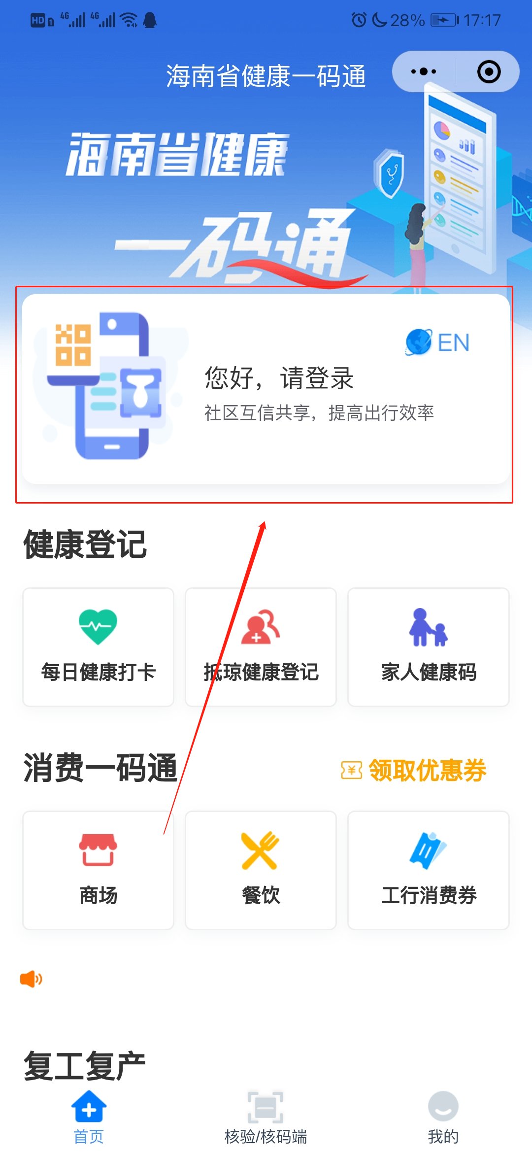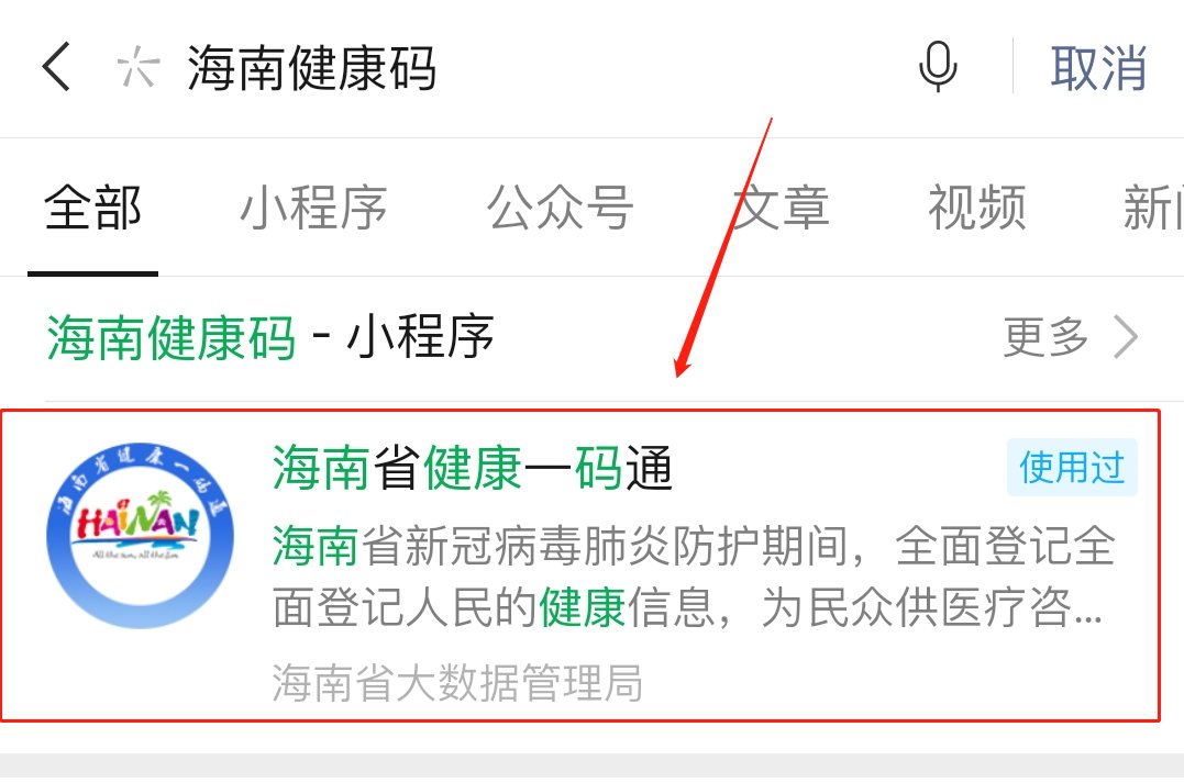 1.微信搜索“海南健康碼”,或掃描下方二維碼進(jìn)入海南省健康一碼通小程序;