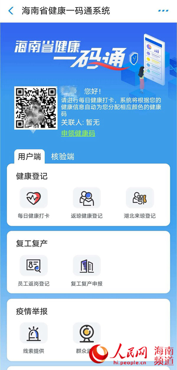 海南省健康一碼通系統(tǒng)是以居民或者復(fù)工復(fù)產(chǎn)人員申報(bào)的健康數(shù)據(jù)為基礎(chǔ),結(jié)合防疫大數(shù)據(jù)信息比對(duì)校驗(yàn)后生成的個(gè)人專屬的二維碼。