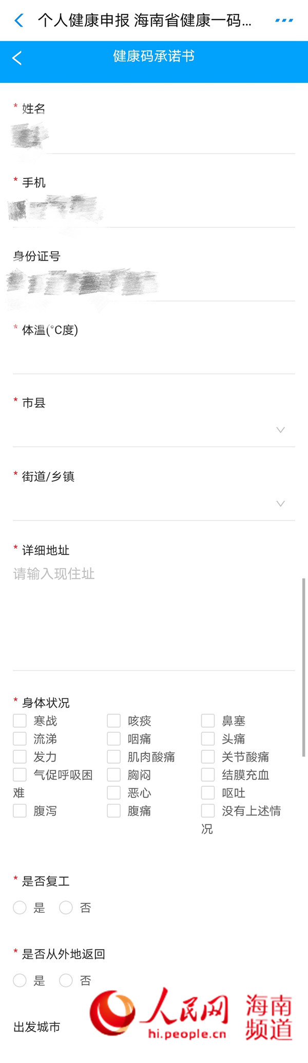 借助健康碼的健康登記功能,個(gè)人可以自助在線報(bào)告健康狀態(tài),無論是本地居民、省外返瓊或者湖北來瓊的人員,均可在健康碼的健康登記功能進(jìn)行自主健康打卡登記。