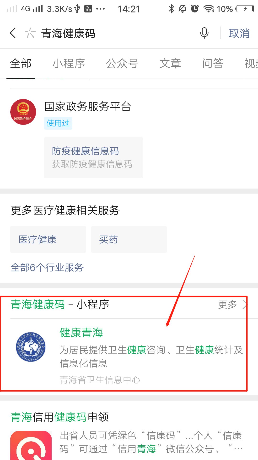 第一步:微信搜索“青海健康碼”,然后找到“健康青海”小程序,然后點(diǎn)擊進(jìn)入并關(guān)注(如下圖所示);