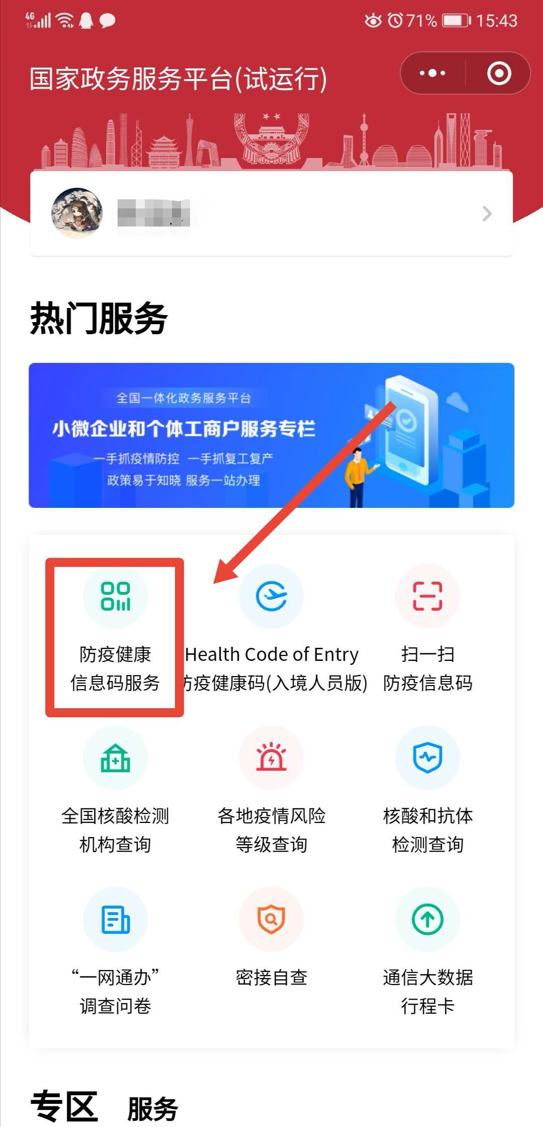 3、點擊“防疫健康信息碼服務(wù)”,領(lǐng)取屬于自己的防疫健康信息碼