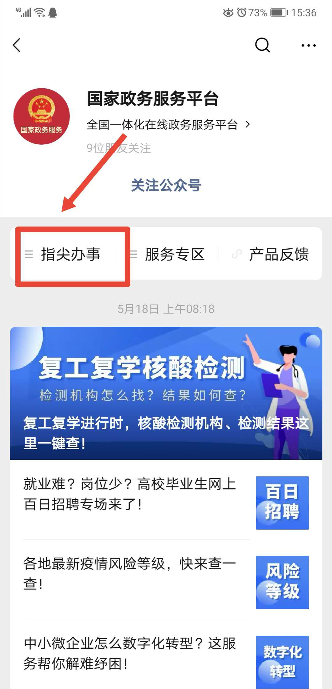 1、微信搜索“國家政務(wù)服務(wù)平臺”小程序,進入申領(lǐng)界面。