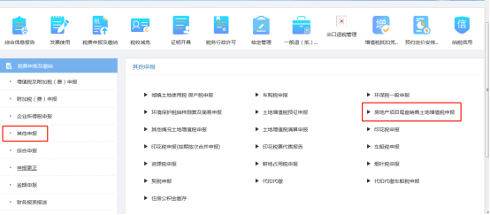 操作流程:登陸重慶市電子稅務(wù)局-我要辦稅-申報納稅-其他申報- 房地產(chǎn)項目尾盤銷售土地增值稅申報