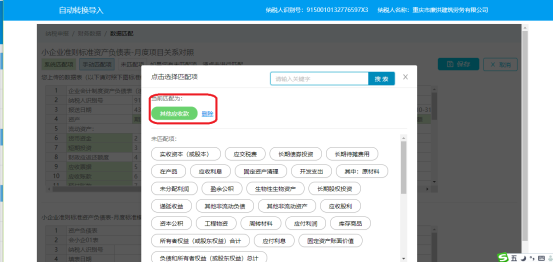 系統(tǒng)自動將導入文件與標準文件進行數(shù)據(jù)項匹配,未自動匹配上的數(shù)據(jù)項可點擊表單上的“未匹配項”進入手動匹配
