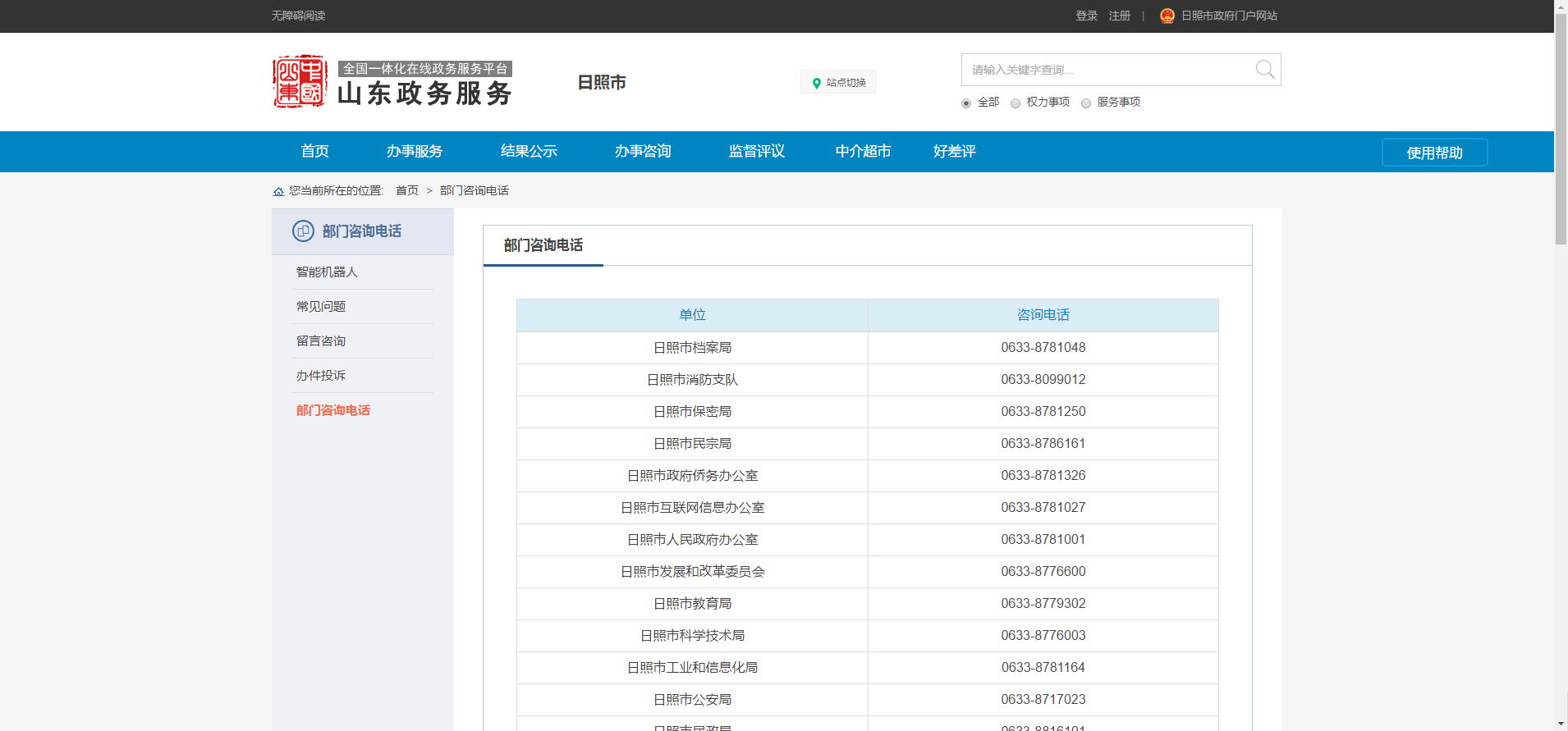 2.業(yè)務(wù)辦理問題請聯(lián)系相關(guān)業(yè)務(wù)部門。在“辦事咨詢”模塊,點擊“部門咨詢電話”,找到部門電話,致電咨詢。