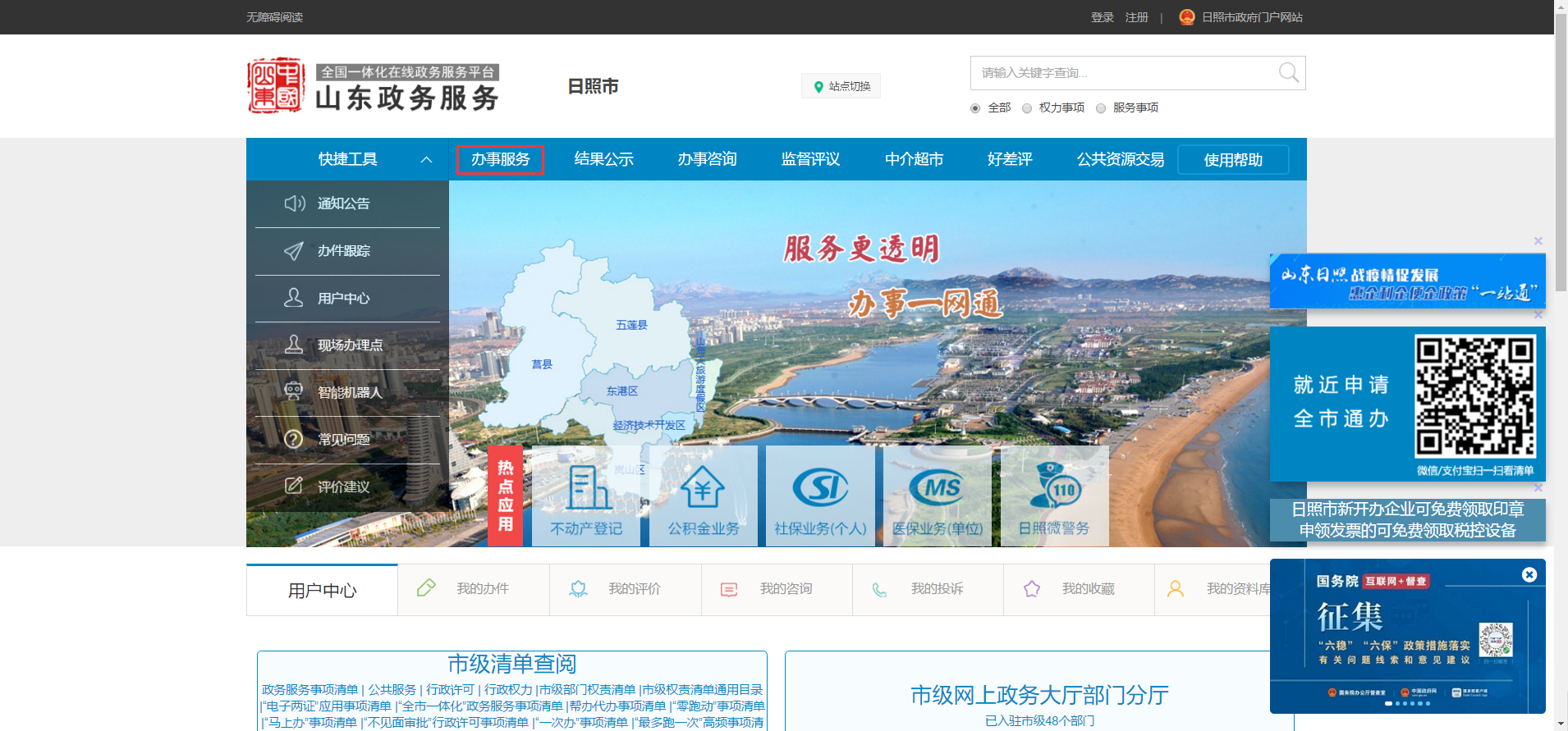 1.在山東政務(wù)服務(wù)網(wǎng)(日照站)點擊“辦事服務(wù)”模塊。