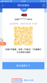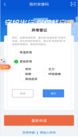 如果生成安康碼后發(fā)現(xiàn)身體有異常,及時進行異常申報。體溫異常,請勾選“體溫異常”并填寫體溫,如為其他異常情況,請勾選“其他異?!辈⒐催x異常情況。具體操作如下圖所示: