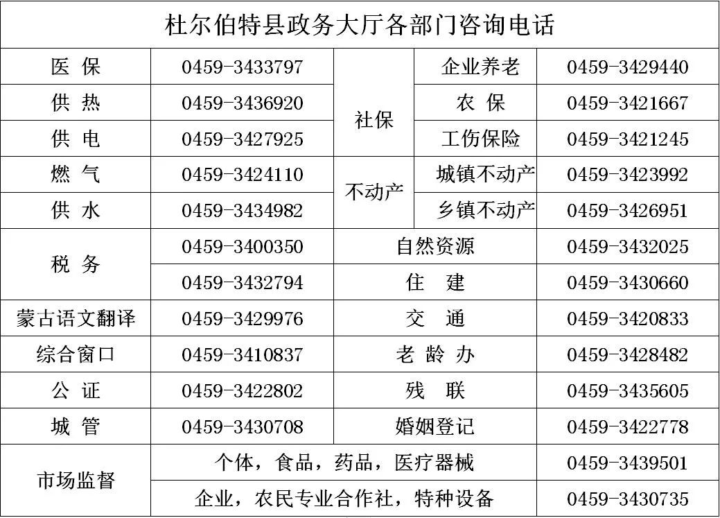 杜爾伯特縣政務(wù)服務(wù)中心服務(wù)熱線
