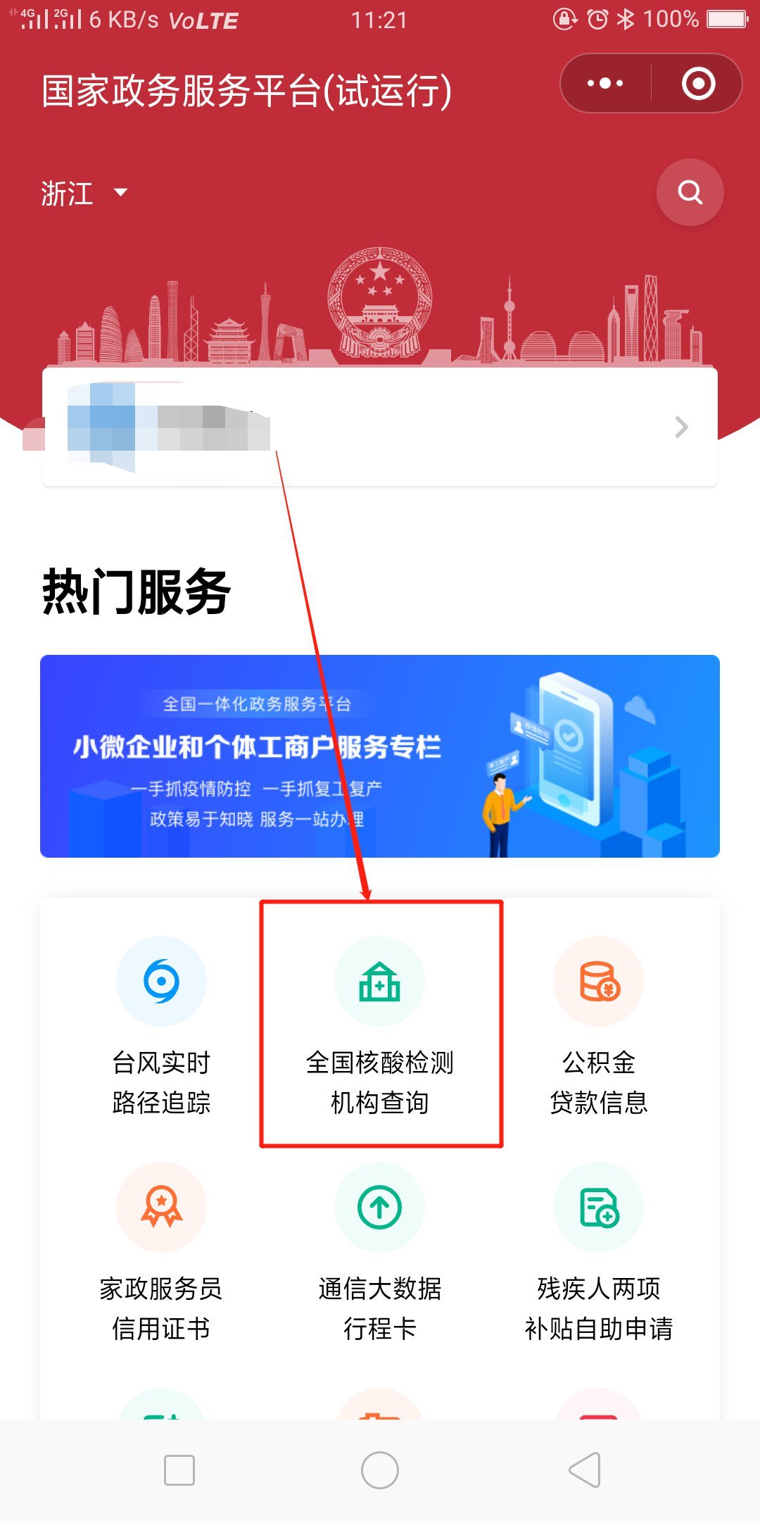 第二步,進(jìn)入小程序后在熱門服務(wù)中找到并點(diǎn)擊“全國(guó)核酸檢測(cè)機(jī)構(gòu)查詢”;(如下圖所示)