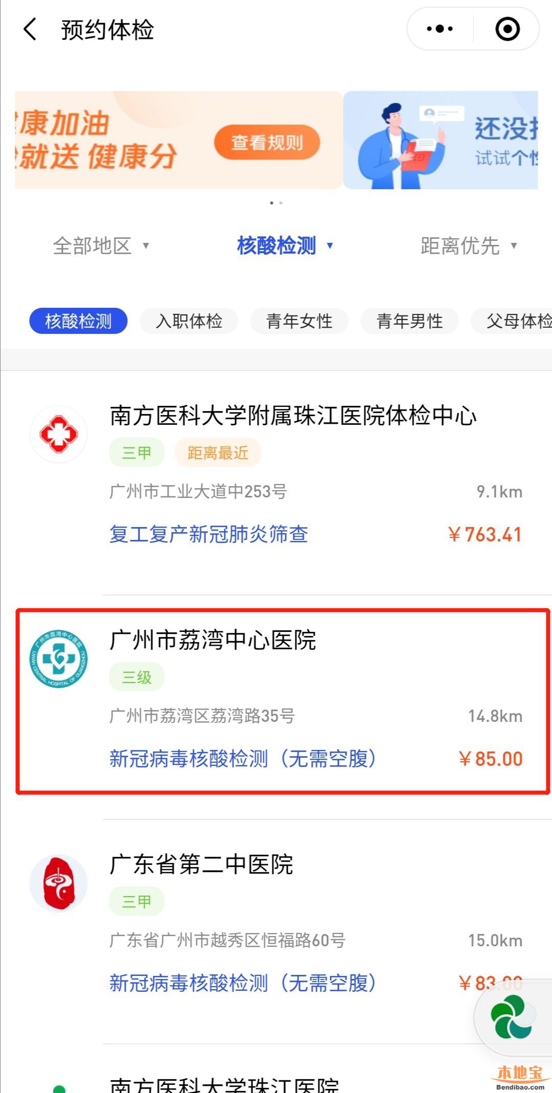 第五步:選擇醫(yī)院,如選擇“廣州市荔灣中心醫(yī)院”;