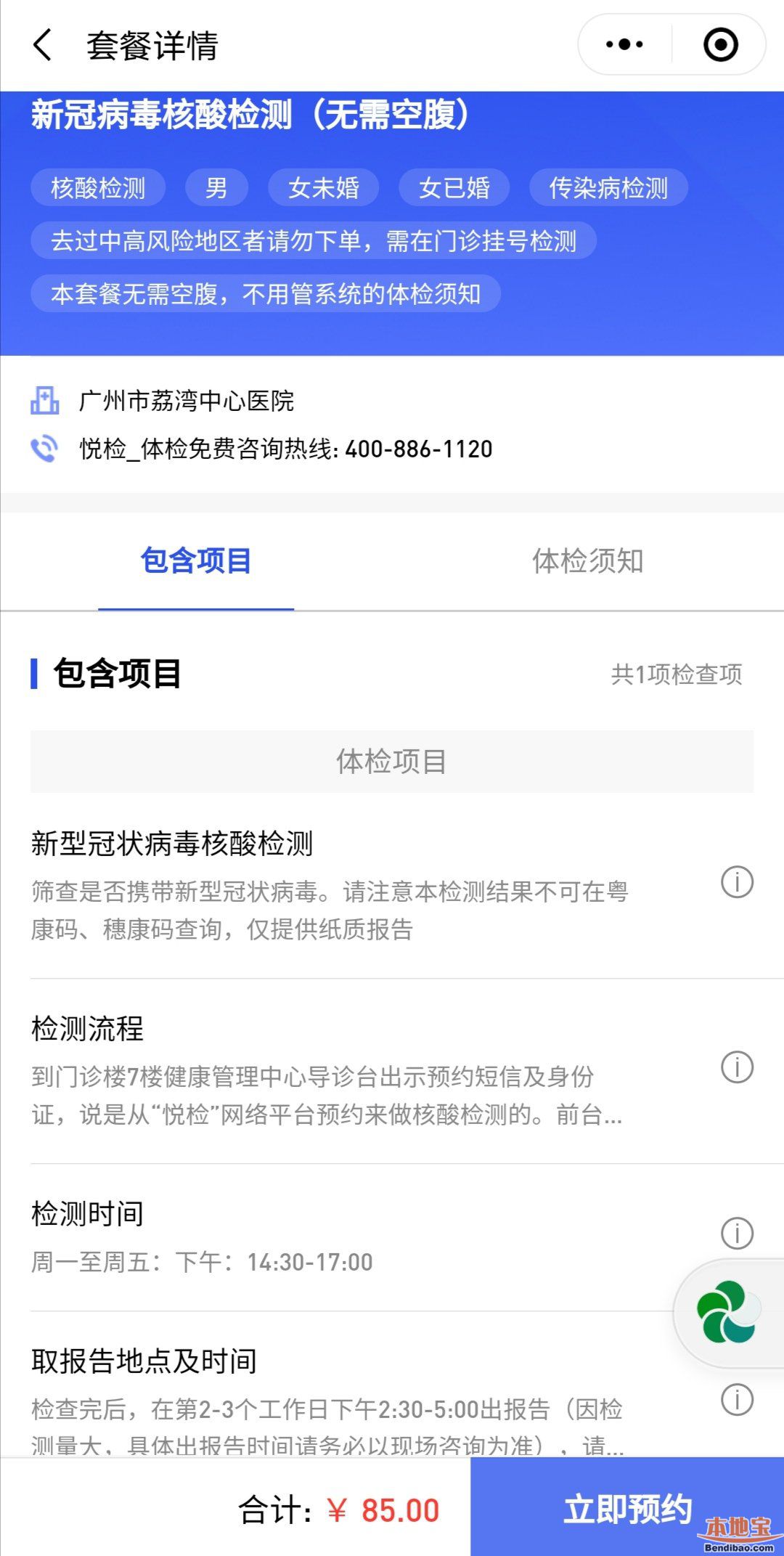周一至周五8:00-12:00,14:30-17:30(節(jié)假日除外) 采樣:周一至周五8:30-9:00(節(jié)假日除外); |