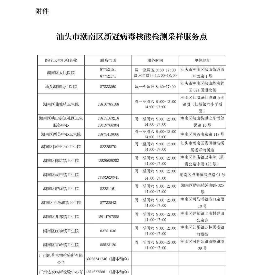 一、汕頭市潮南區(qū)核酸檢測機(jī)構(gòu)