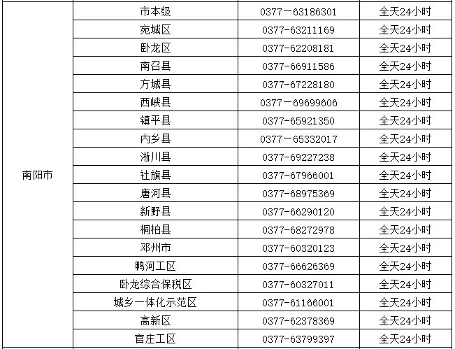南陽市新冠疫情防控指揮部咨詢電話:0377-63186301;