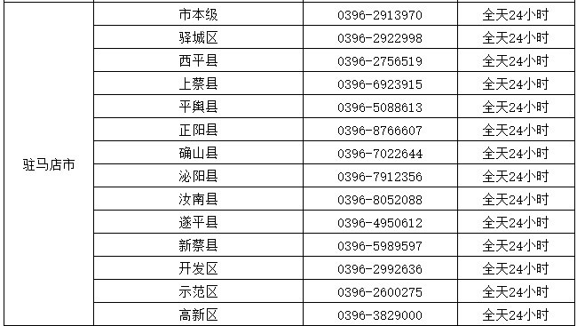駐馬店市各縣區(qū)疫情防控指揮部電話(區(qū)號 0396)