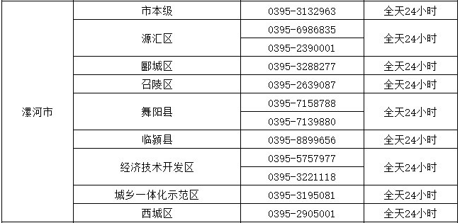 漯河市新冠疫情防控指揮部咨詢電話:0395-3132963;