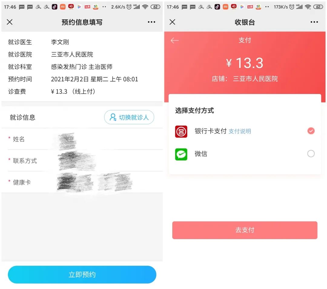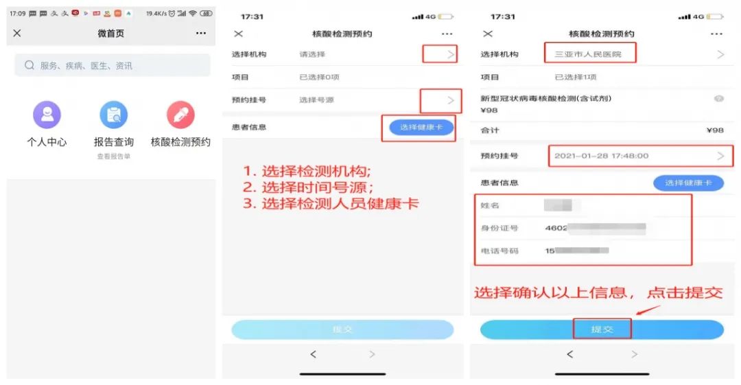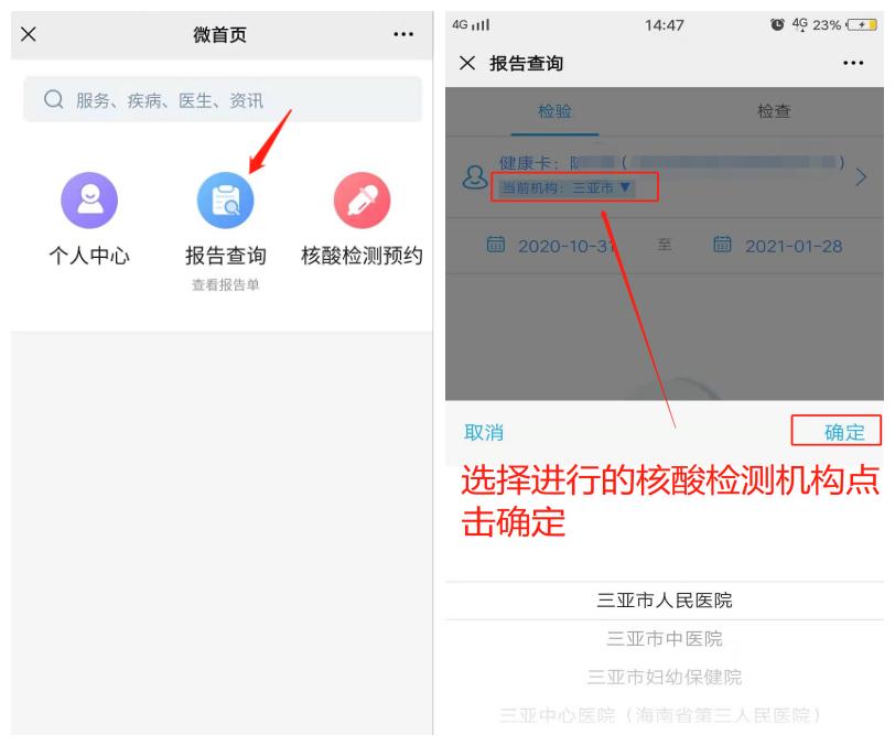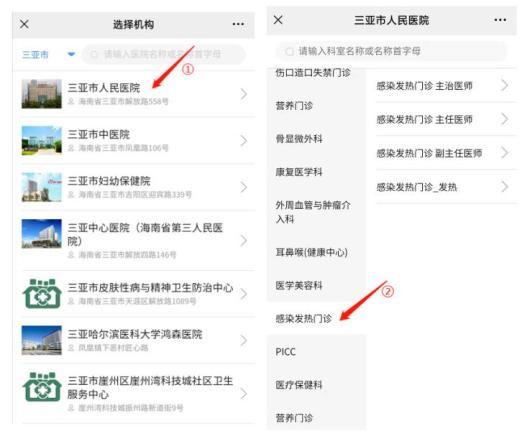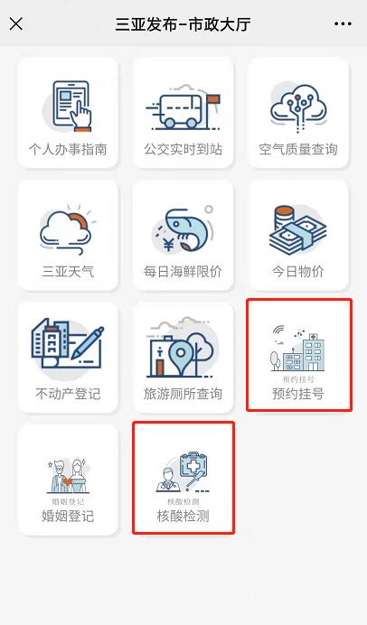 2、點擊“預(yù)約掛號”或“核酸檢測”,進入頁面;