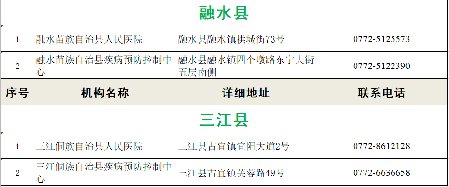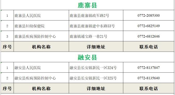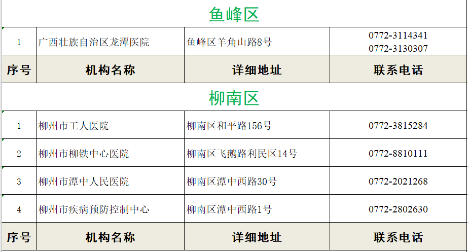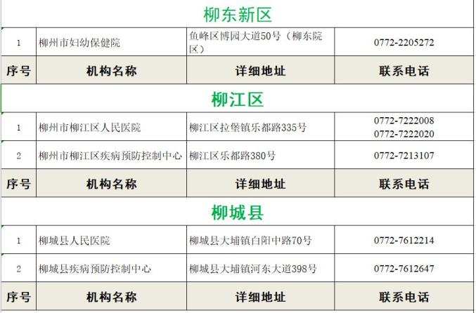 魚峰區(qū)城中區(qū)柳江區(qū)柳北區(qū)柳南區(qū)柳城縣鹿寨縣融水縣融安縣三江縣