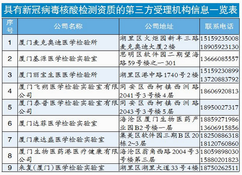 2、廈門市核酸檢測機(jī)構(gòu)聯(lián)系信息