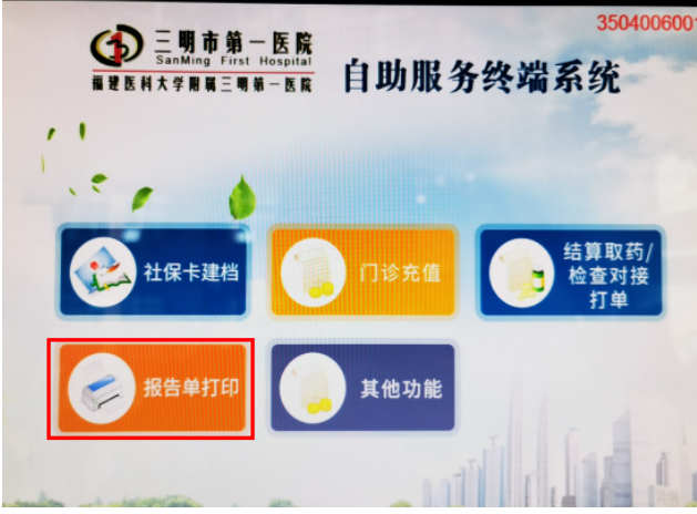 6、取報告可至醫(yī)院自助機上憑體檢號或條形碼掃碼取報告