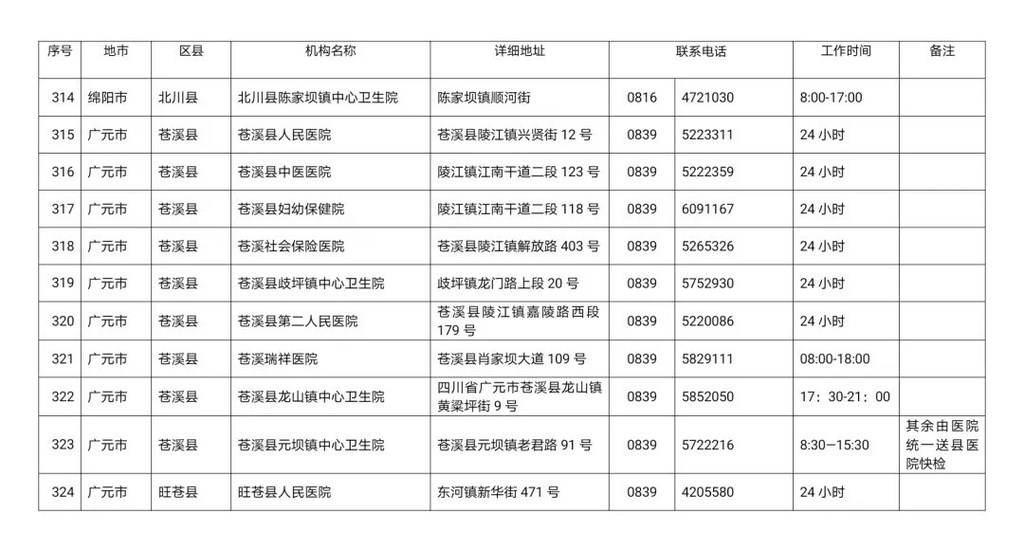 2、廣元市24小時(shí)新冠病毒核酸檢測(cè)機(jī)構(gòu)信息