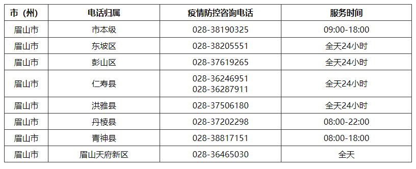 眉山市疫情防控咨詢電話:028-12345;028-38190325;