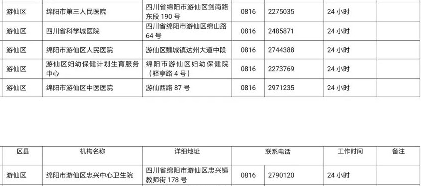 一、綿陽市游仙區(qū)核酸檢測機構(gòu)