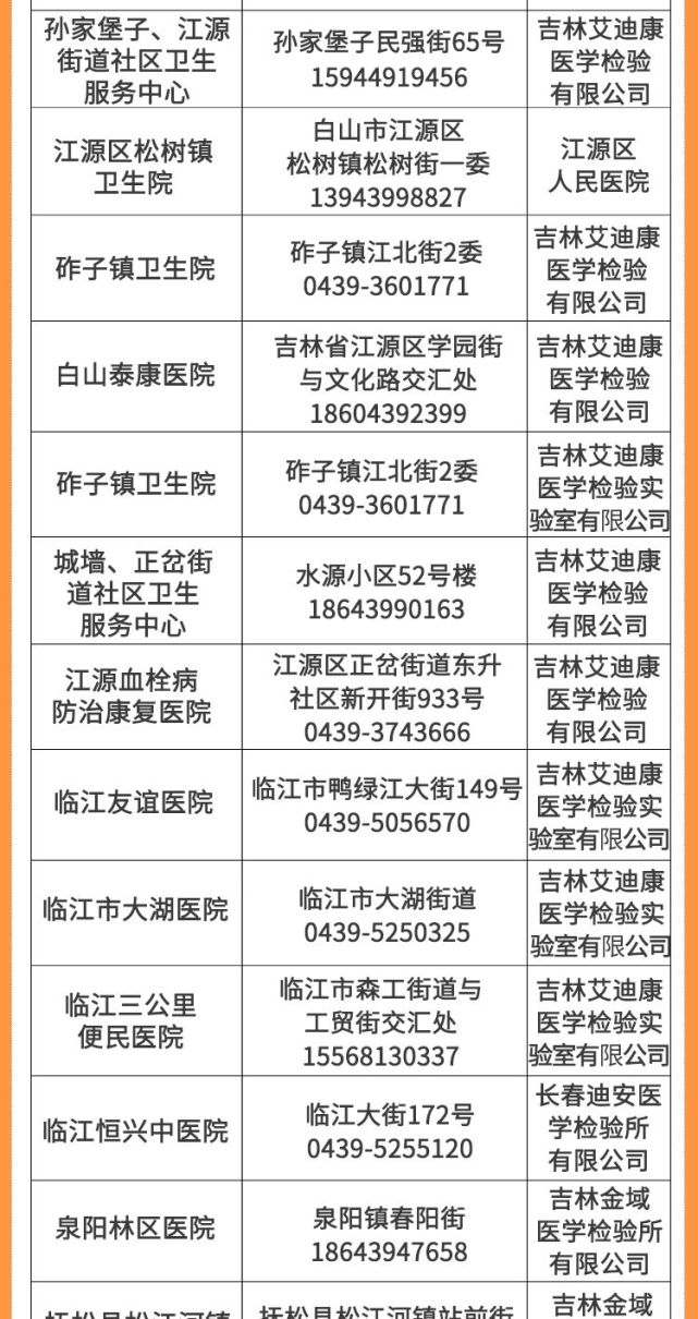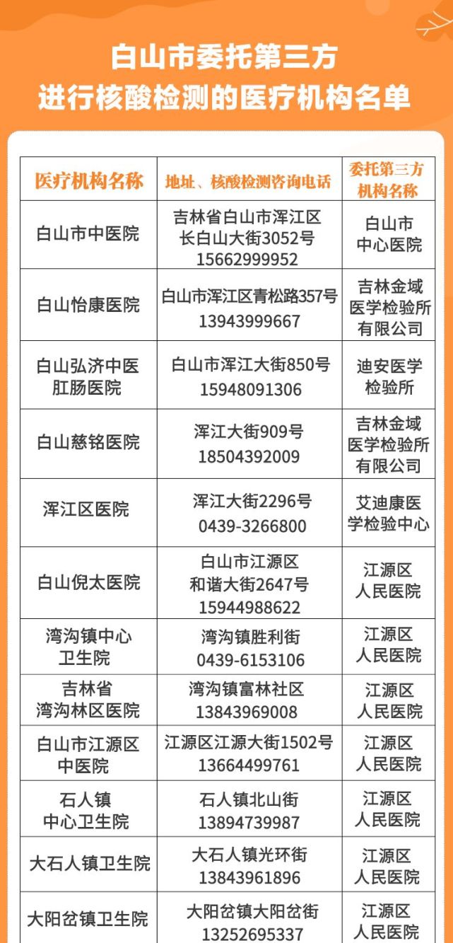 2、白山市新冠肺炎核酸檢測機構聯(lián)系信息