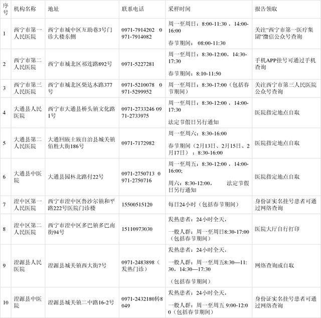 2、青海省核酸檢測機(jī)構(gòu)名稱地址及預(yù)約電話
