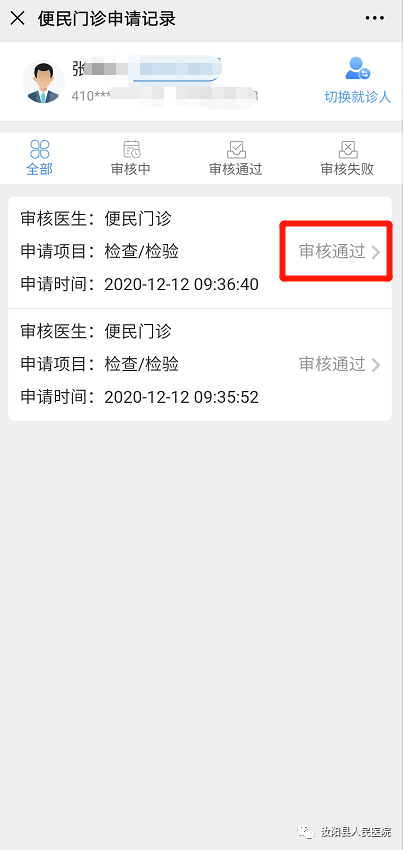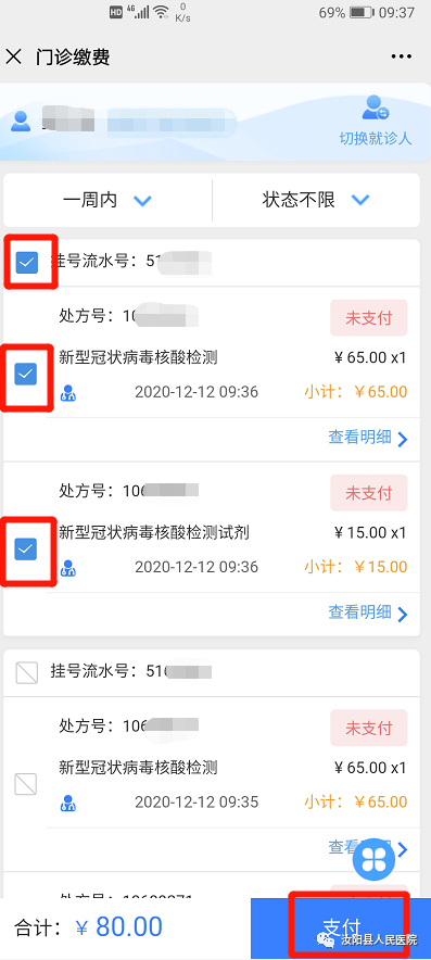 通過微信支付后,即完成線上預約繳費。預約檢測者可持個人電子就診卡到院進行核酸采樣。