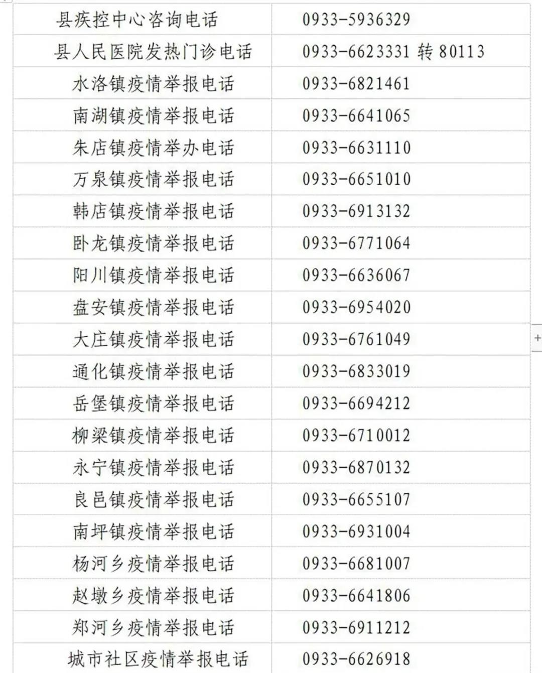 平?jīng)鍪懈鳎▍^(qū))縣新冠疫情防控指揮部咨詢電話
