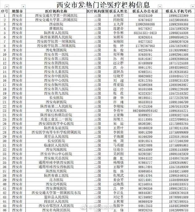 西安市發(fā)熱門診醫(yī)療機(jī)構(gòu)聯(lián)系信息