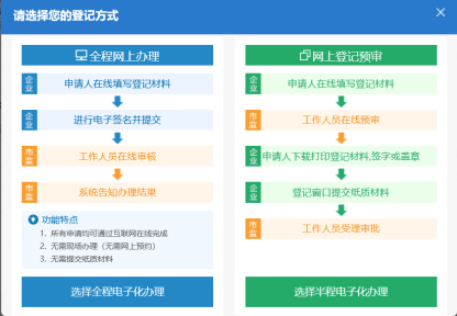 10. 其他需要上傳資料上傳完成后點(diǎn)擊【保存并預(yù)覽】,系統(tǒng)彈出登記方式選擇界面,如下圖所示。