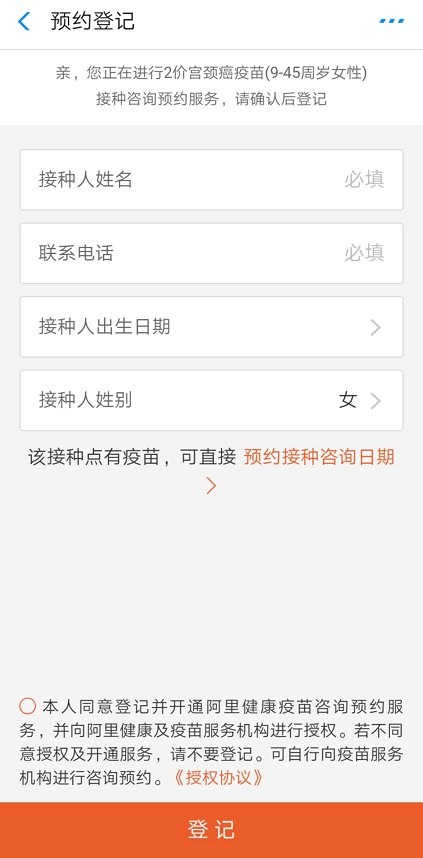第5步,填寫(xiě)接種人信息,選擇預(yù)約接種時(shí)間,點(diǎn)擊“登記”即可↓