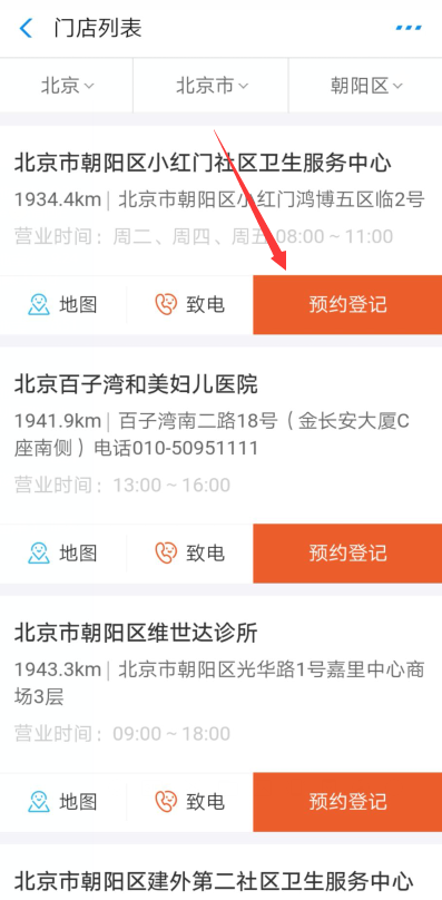 第4步,選擇門(mén)店,點(diǎn)擊“預(yù)約登記”↓
