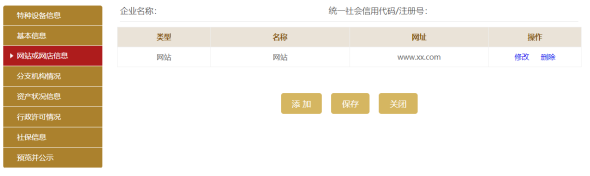 第七步:進入網(wǎng)站或網(wǎng)店信息頁面。可添加多條網(wǎng)站或網(wǎng)店信息,也可修改或刪除信息。